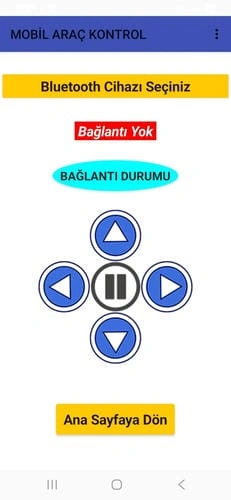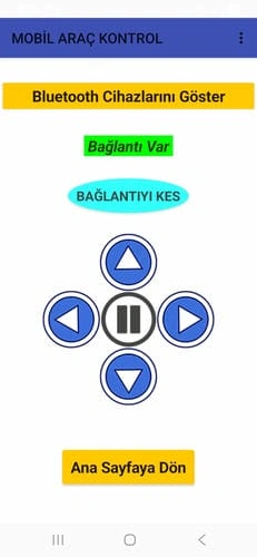 Artık uygulamada ileri geri sağ sol ve dur butonlarını kullanarak mobil araç kitini kumanda edebilirsiniz.